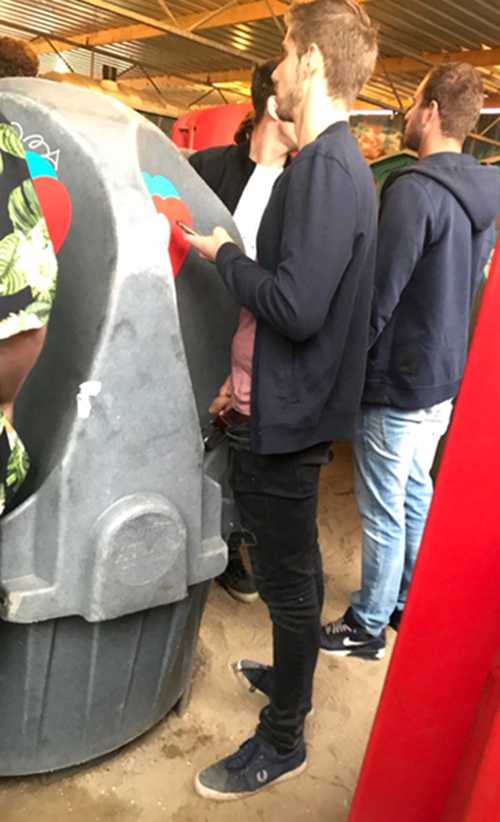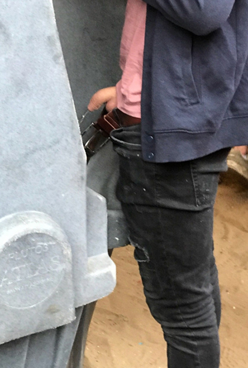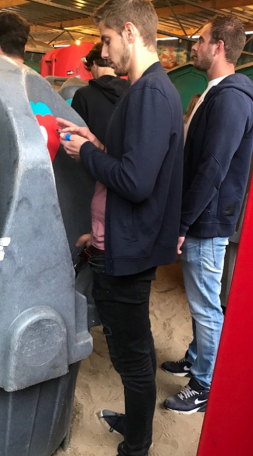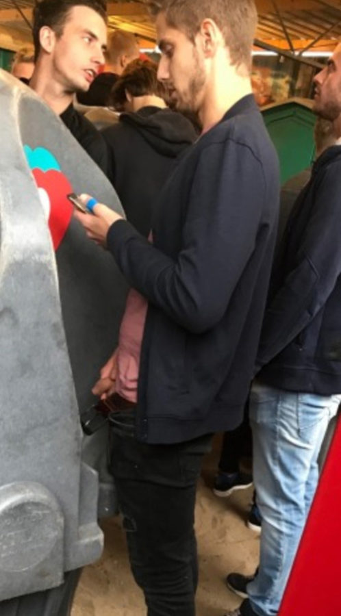Really these kind of urinals located in festivals and street parties are not for shy guys…And they are an excellent place to see handsome guys with their big cocks pissing! And that’s what the boy who photographed this boy pissing hands free while checking his phone has thought..