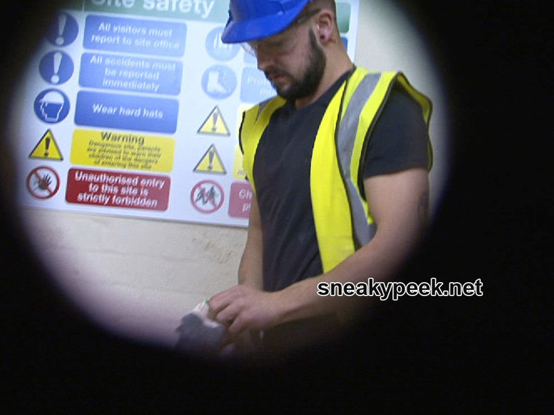 The pervy cameraman at SneakyPeek has been busy again. Through a tiny hole which he drilled in a wall he’s been able to peek into a changing room full of builders. These lads get themselves ready for work before their shifts and then strip out of dirty clothes afterwards. It’s a busy place and is constantly full of very hot men. They can’t see his tiny camera pointing through the hole filming every second as they expose their bodies to him. And to you as well now! Enjoy this hot tattooed bloke showing us his cock.