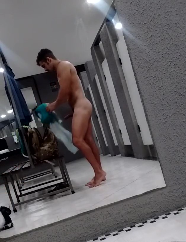 This hunk has come out of the showers in the gym locker room and it seems that something has caught his attention…when he removes the towel, you can see a full boner! Nice dick!