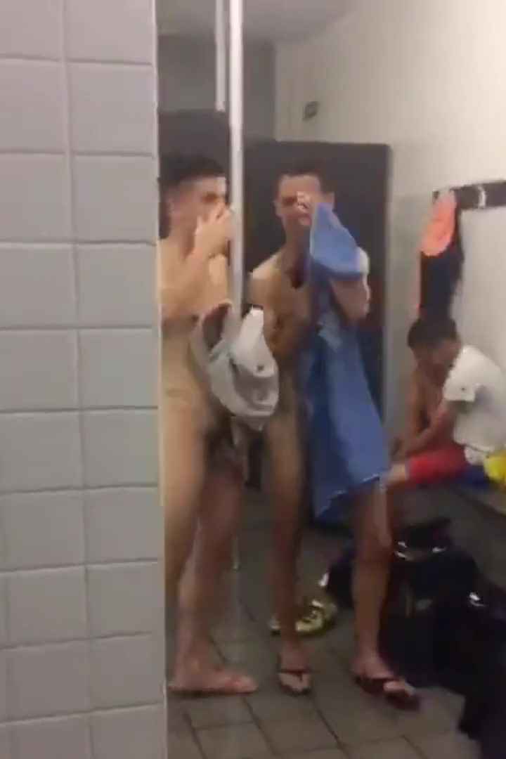 Spanish footballer live streaming his young teammates after the showers! Big dick here!