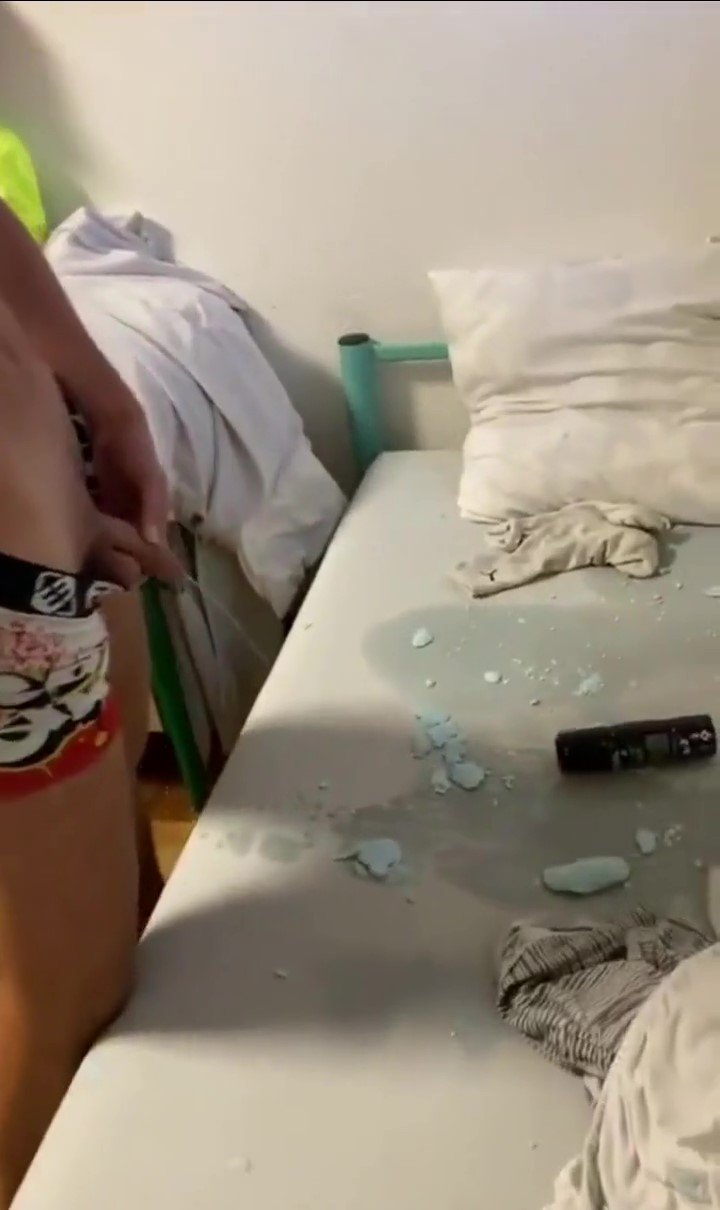 Do you remember the horny French soccer player who cums over his sexy teammate? He attacks again! He cums and pees on his teammate’s bed!