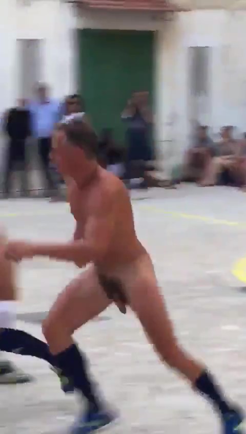 A group of amateur Italian footballers play naked in a public square Watch these mature players run around with their bouncing dicks in front of the curious public!! We love shameless men!