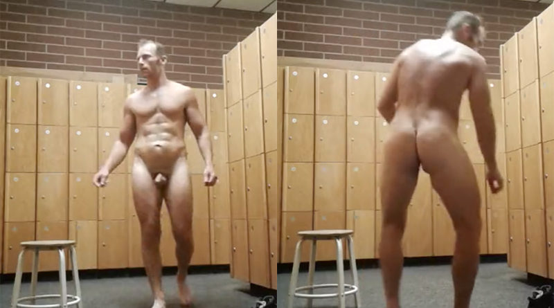 Like to spy naked mature guys in the locker room? Here you have an excellent opportunity!This sexy dilf takes advantage of being alone in the locker room after training to film himself naked and see the results of his training in his body. What do you think guys?