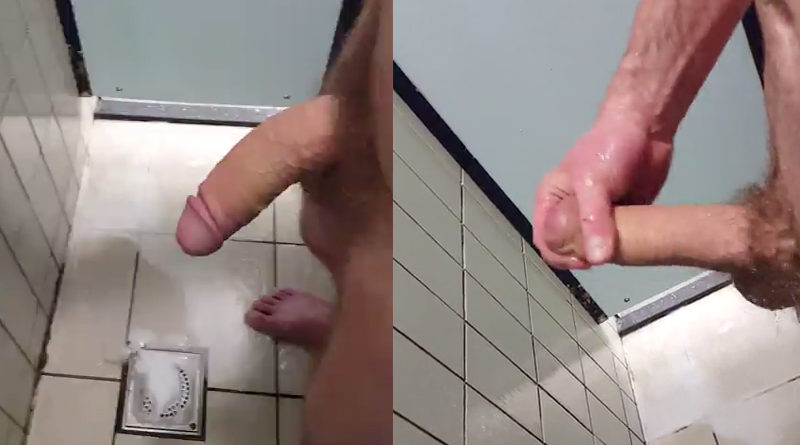 Hung coach wanking in public showers after trainning