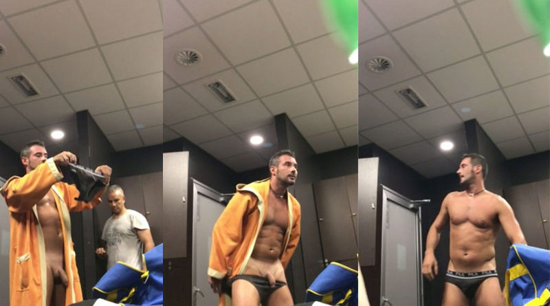 The locker rooms bring very nice surprises, this time after the training we find this daddy dressing up after the shower letting us watch without trying to hide his huge and beautiful uncut cock!