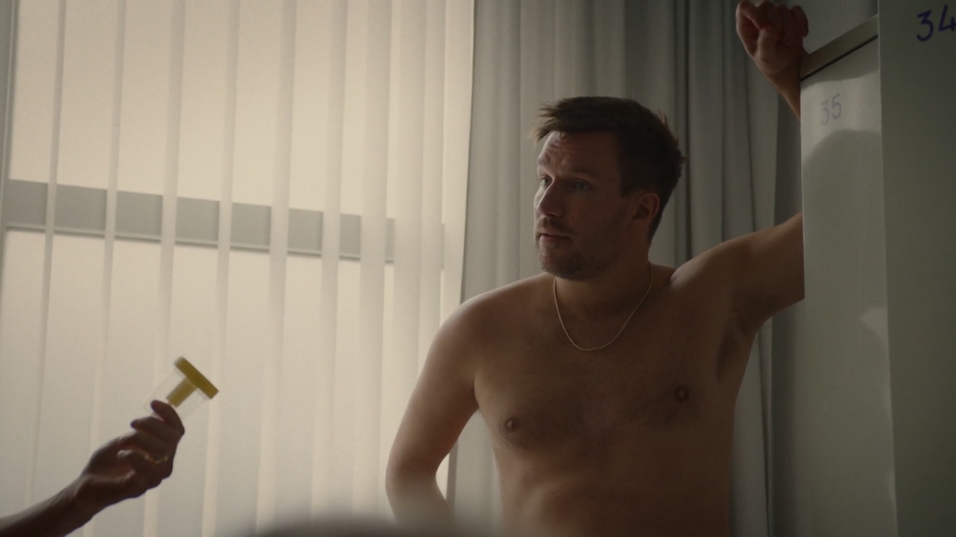 Based on true events, Exit(2019) is a drama based in Norway’s version of Wallstreet. In the financial sector of Oslo money, drugs, and sex are abundant. The men, luckily, get super nude while they do all of these things. Simon J. Berger shows his schlong when he gets out of bed naked and reaches for a robe. We get to check out that rump before he does! We see he and Tobias Santelmann in a few hot straight sex scenes, but Tobias also shows off his erect cock. In this scene with Max Ovaska, Olli Rahkonen shows a monster cock that takes all the attention !Thank goodness these men have exited their pants!