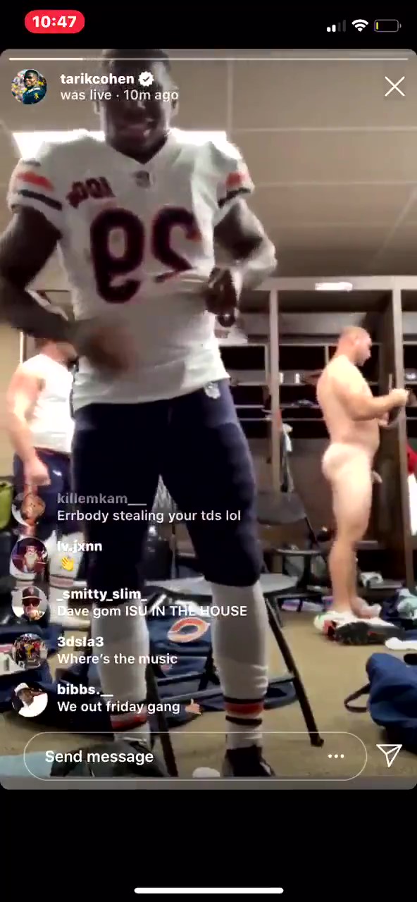 Famous NFL´s player Kyle Long send social media into shock. The Bears offensive lineman is seen naked on Instagram when teammate Tarik Cohen posted a locker room video!