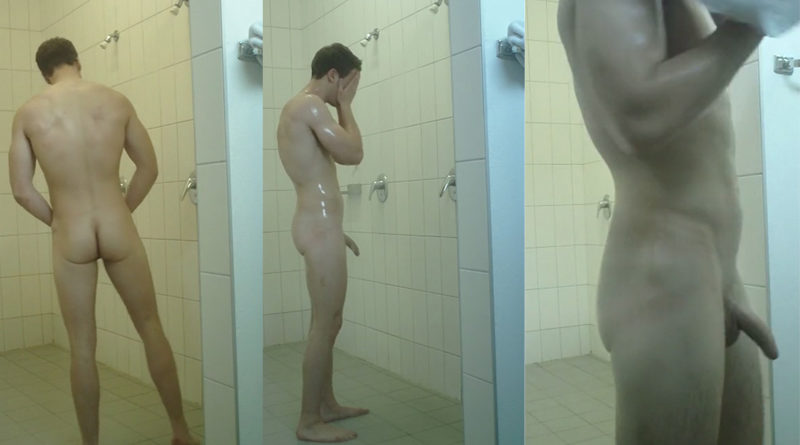 This fit lad has been caught while taking a shower in the gym changing room. Thank’s to the open shower we can easily spy on him and we can admire him washing his smooth body. He seems to have noticed that someone is watching him.It will be that… or the warm water that causes thir cock start to grow and grow..until it begins to dry near us and we can verify that it is indeed excited! Nice Cock!