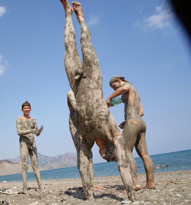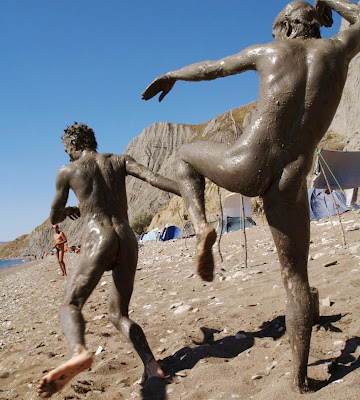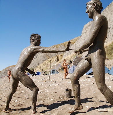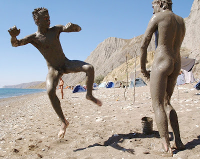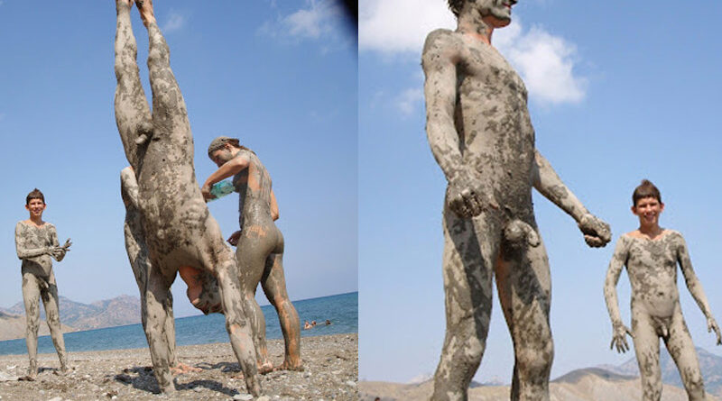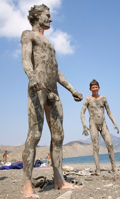 Straight lads have fun while taking a mud bath at the beach. Unfortunately there are no images of them passing mud all over each other’s bodies but we can imagine the situation.