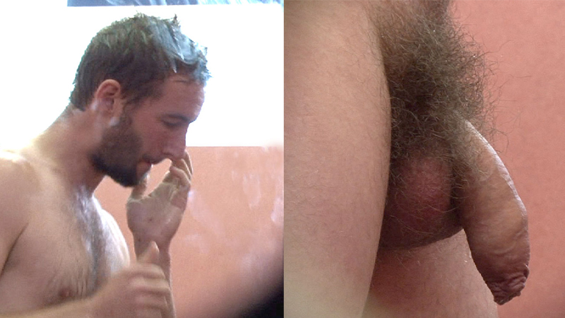 Teasing with his BIG hard cock in front of other guy in the Locker Room