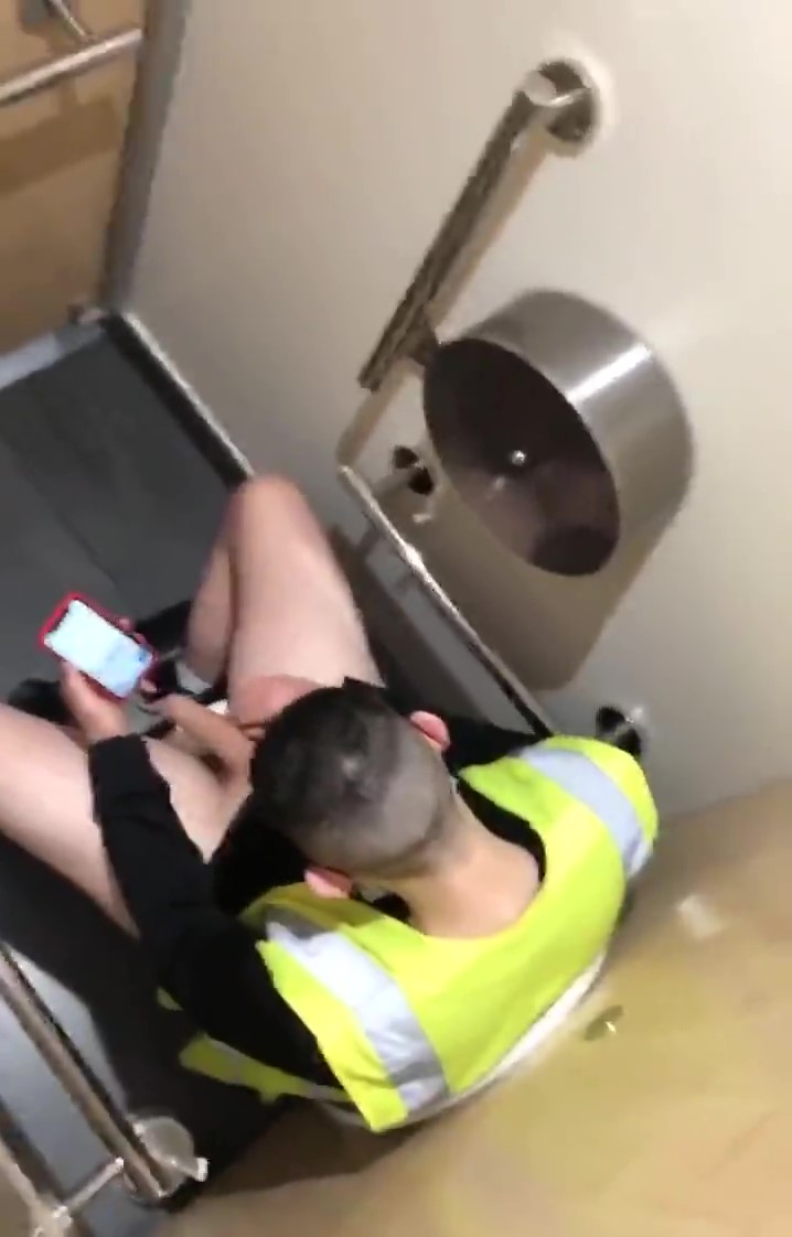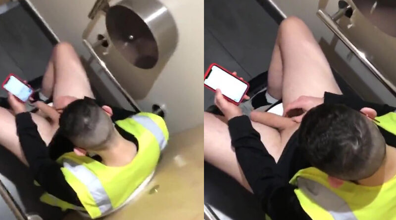 Worker caught playing with his big cock in public toilet